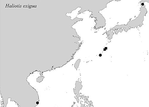 Below the distribution of Haliotis exigua is shown. here.