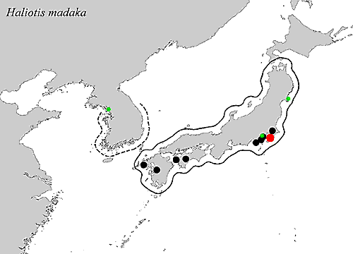 Below the distribution of Haliotis madaka is shown. here.